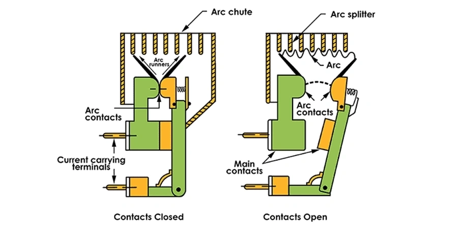 When a circuit breaker opens, the sudden gap in the circuit causes an arc as electricity leaps across it. That’s the timing when arc chutes come into play.